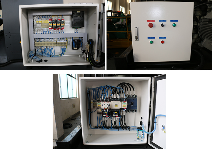 Generator set included: Diesel Engine, Brushless Alternator, Radiator, self-starting control panel, circuit breaker panel, Vibration damping pads, Hi-strength base frame